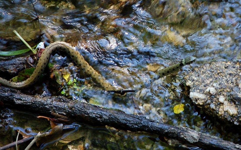 Cobra-de-água-de-colar (Natrix natrix)- juvenil. Local: Margem esquerda do Rio Vez, Volta da Lamela. Data: 21-05-2013. Foto: Bernardete Amorim.