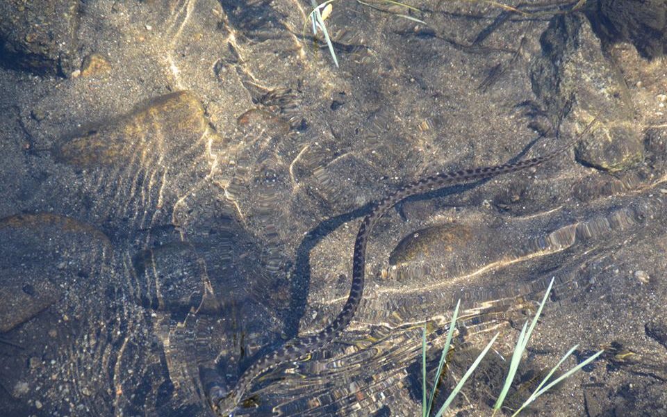 Cobra-de-água-viperina (Natrix maura) Local: Margem esquerda do Rio Vez, junto à Volta da Lamela. Data: 25-08-2014. Foto: Bernardete Amorim.