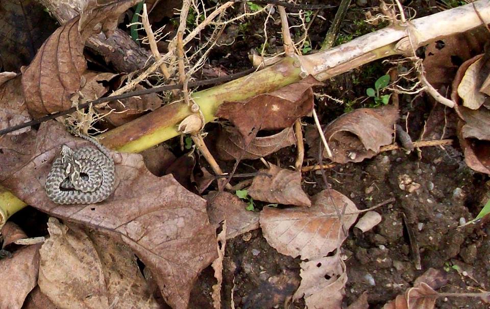 Cobra-de-água-viperina (Natrix maura)- junenil Local: Ecovia, margem direita do Rio Vez, Guilhadeses Data: 21-11-2014. Foto: Bernardete Amorim.