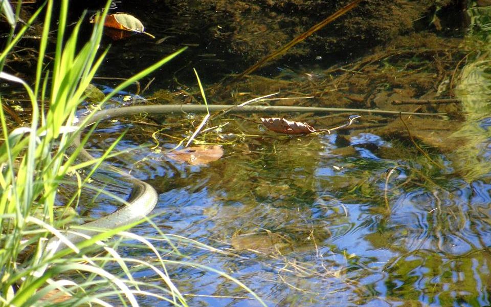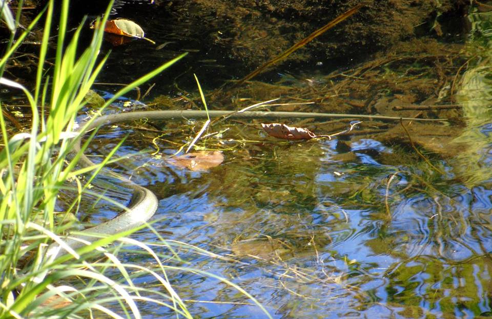 Cobra-de-água-de-colar (Natrix natrix). Local: Margem esquerda do Rio Vez, junto ao Fluvivez. Data: 17-07-2016. Foto: Bernardete Amorim.