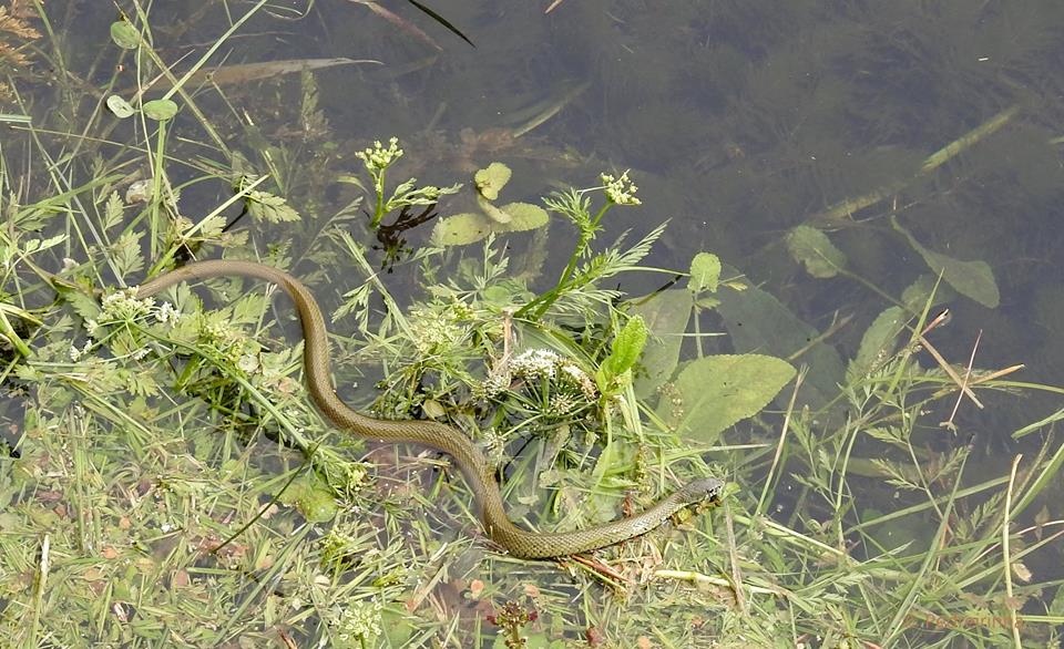 Cobra-de-água-de-colar (Natrix natrix) – juvenil. Local: Margem esquerda do Rio Vez, junto à Ponte das Piscinas. Data: 04-05-2017. Foto: Bernardete Amorim.