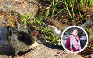 Melro-de-água (Cinclus cinclus) – Juvenil e Adulto. Local: Rio Vez, cachoeira junto à Ponte Centenária. Data: 07-06-2018. Foto: Bernardete Amorim.