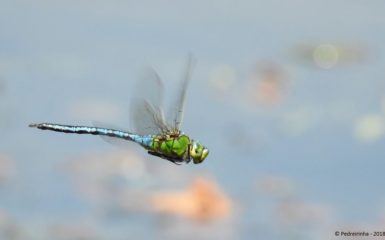 Libélula “Anax imperator” – fêmea. Local: Margem direita do Rio Vez, junto ao parque de estacionamento da Ponte Nova. Data: 14-07-2018. Foto: Bernardete Amorim.