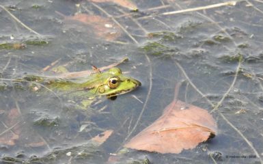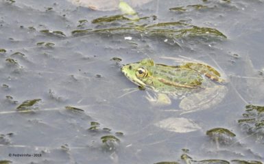 Rã-verde (Pelophylax perezi) . Local: Rio Vez, junto à Ponte Nova. Data: 24-06-2018. Foto: Bernardete Amorim.