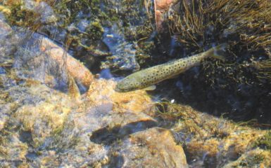 Truta-fário (Salmo trutta). Local: Rio Vez, junto ao parque das crianças da Ponte Nova. Data: 16-05-2018. Foto: Bernardete Amorim. Este peixe é de relativamente fácil identificação. Cabeça e olhos grandes, mandíbulas providas de dentes agudos e fortes, a maxila superior ultrapassa o nível posterior do olhos. Coloração muito variável com a idade e o habitat. […]