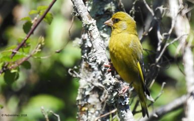 Verdilhão (Carduelis chloris). Local: Margem direita do Rio Vez, Ecovia, junto ao campo da feira. Data: 15-05-2018. Foto: Bernardete Amorim.